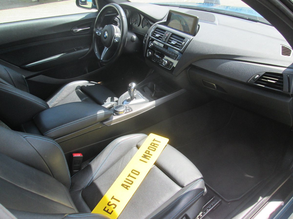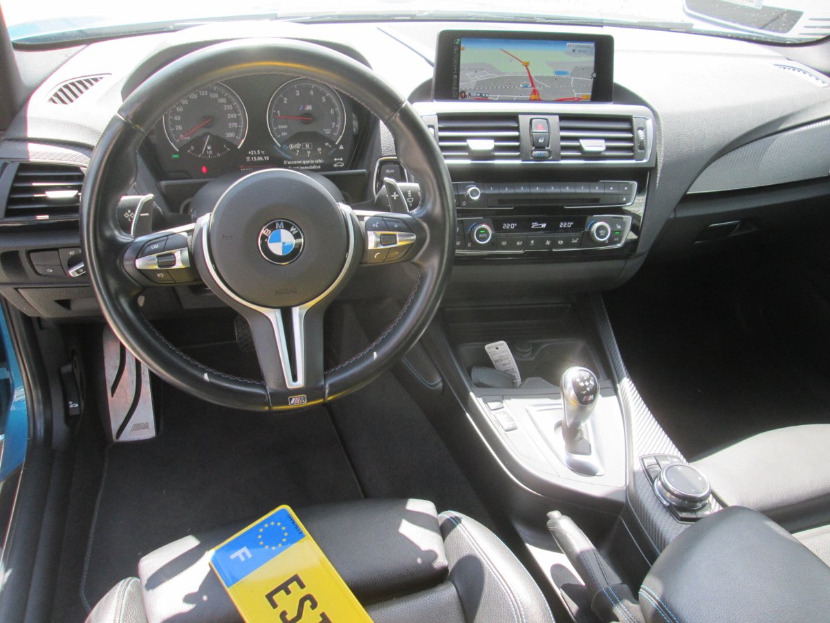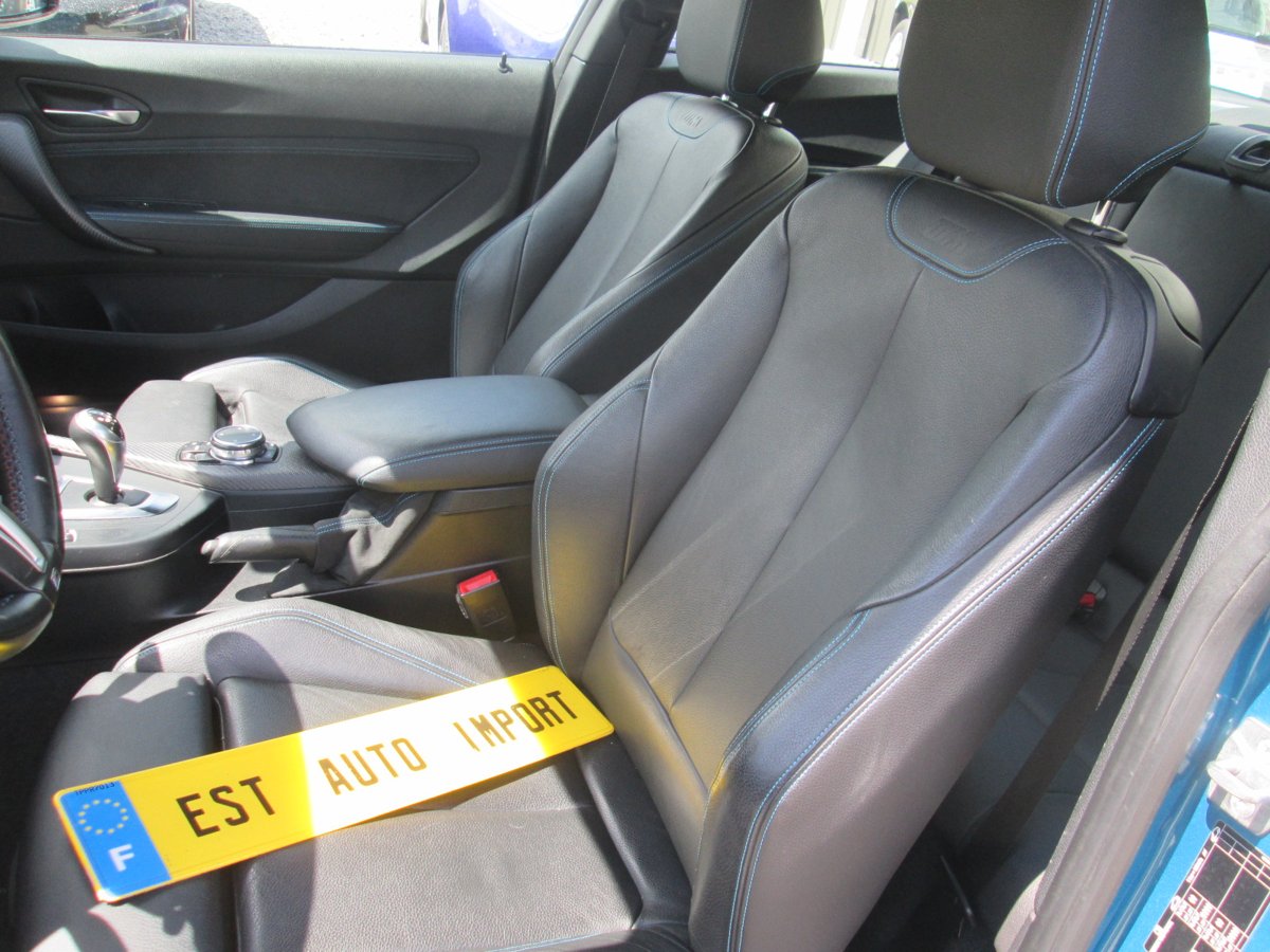 Clim auto bizones, GPS Professionnel + Bluetooth + Sound System Harman Kardon + DAB, volant cuir M chauffant et multifonctions avec palettes, capteur de pluie et de luminosité, jantes alu M 437 en 19 pouces, sièges sport chauffants avec surpiqûres bleues, régulateur de vitesse, boite auto DKG, bi-xénon tournants, vitres Ar surteintées, décor carbone, alarme, keyless Entry & Go, radar de recul avec caméra, rétro intérieur et extérieur anti-éblouissement, …
