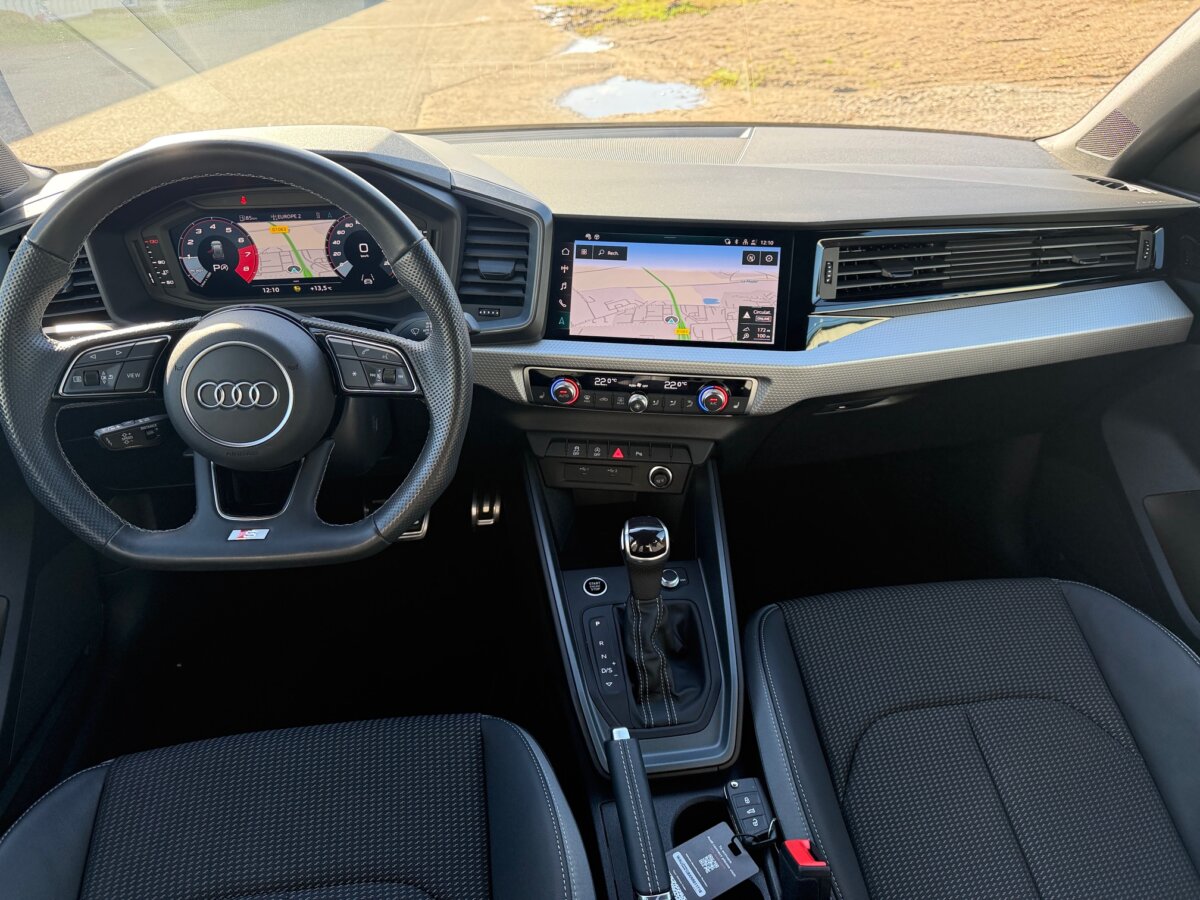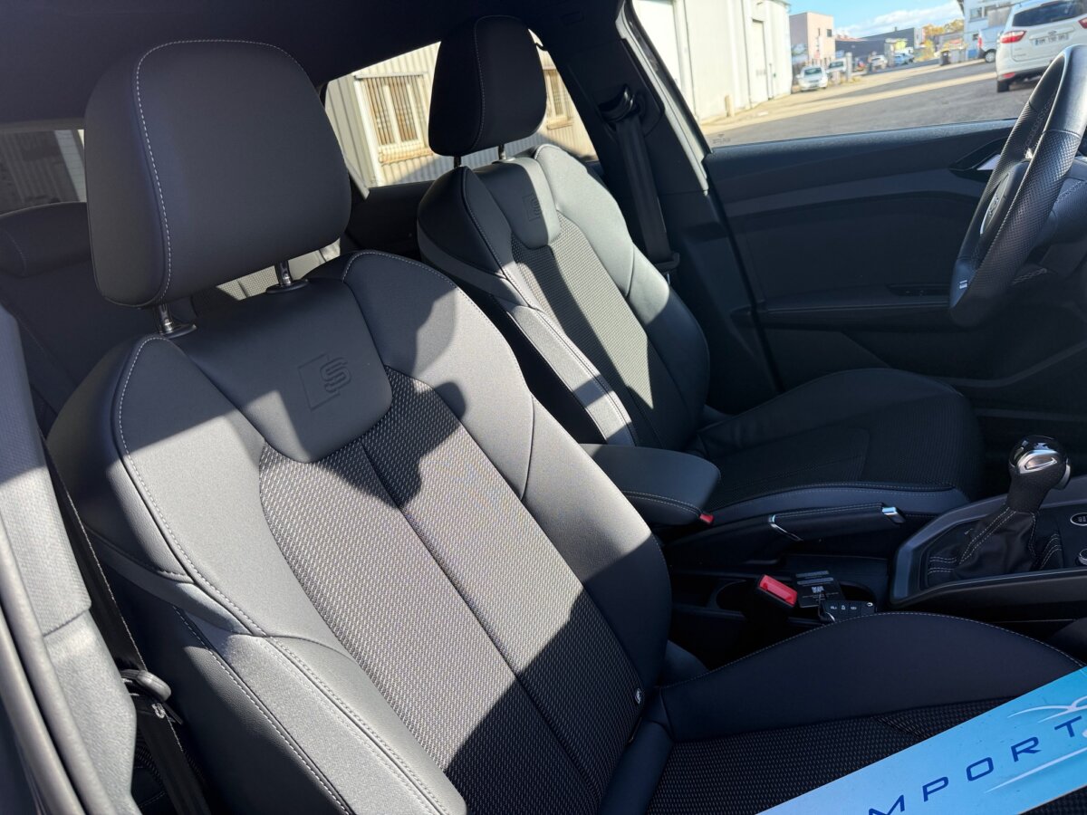 Clim auto bizone, Cockpit Digital, GPS avec fonctions MMI + Apple Carplay ou Android Auto, Audi Smartphone Interface, capteur de pluie et de luminosité, pack S-Line, pack rangement, pack lumière d’ambiance Plus, pack black Plus, sièges sport chauffants, keyless Entry & Go, rétro élec + chauffants + rabattables, phares assistés, régulateur de vitesse avec maintien de la distance ACC, optiques full LED, jantes alu en 17 pouces, volant S-Line en cuir multifonctions et avec méplat, toit + rétro noir, vitres Ar surteintées, chargement des portables par induction, diverses assistances à la conduite,  …