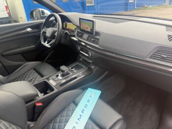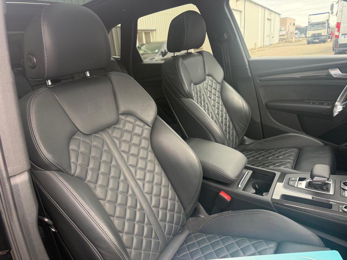 Clim auto 3 zones, toit ouvrant panoramique, GPS avec fonctions MMI + Apple Carplay ou Android Auto + Sound System Bang & Olufsen, attelage escamotable, radar de recul Av + Ar avec caméra, pack rangement, pack lumière d’ambiance, diverses assistances à la conduite, rétro élec + chauffants + rabattables et à mémoire, vision tête haute, feux MATRIX LED, vitres Ar surteintées, keyless Entry & Go, châssis MAGNETIC RIDE, décor int carbone, ouv / ferm du coffre élec, jantes alu bicolores en 20 pouces, volant sport en cuir, multifonctions avec méplat et palettes, sièges sport chauffants à réglages électriques et à mémoire, cuir Nappa noir avec surpiqures blanches, Audi Drive Select, régulateur de vitesse avec maintien de la distance ACC, pack brillance, réservoir à 70 litres, capteur de pluie et de luminosité, fonction Coming / Leaving Home, … ( Véhicule soumis à une écotaxe de 2 776€)