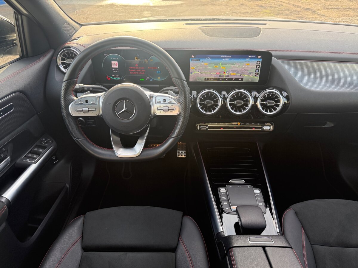 Clim auto THERMATIC, toit ouvrant panoramique, GPS tactile MBUX Multimediasystem avec réalité augmentée et fonctions étendues + Apple Carplay ou Android Auto, AMG LINE, feux LED High Performance, tapis de sol AMG, radar de recul Av + Ar avec caméra et aide au stationnement, pack nuit, diverses assistances à la conduite, capteur de pluie et de luminosité, phares assistés, pack lumière d’ambiance, volant sport en cuir Nappa, multifonctions et avec palettes, régulateur de vitesse, Touchpad, châssis confort, rétro élec + rabattables, décor int Spiral illuminé, vitres Ar surteintées, bares de toit noires, sièges sport chauffants, câbles de chargement, Dynamic Select, pack Business, pack Advanced, jantes alu en 20 pouces AMG, ouv / ferm du coffre électrique, …